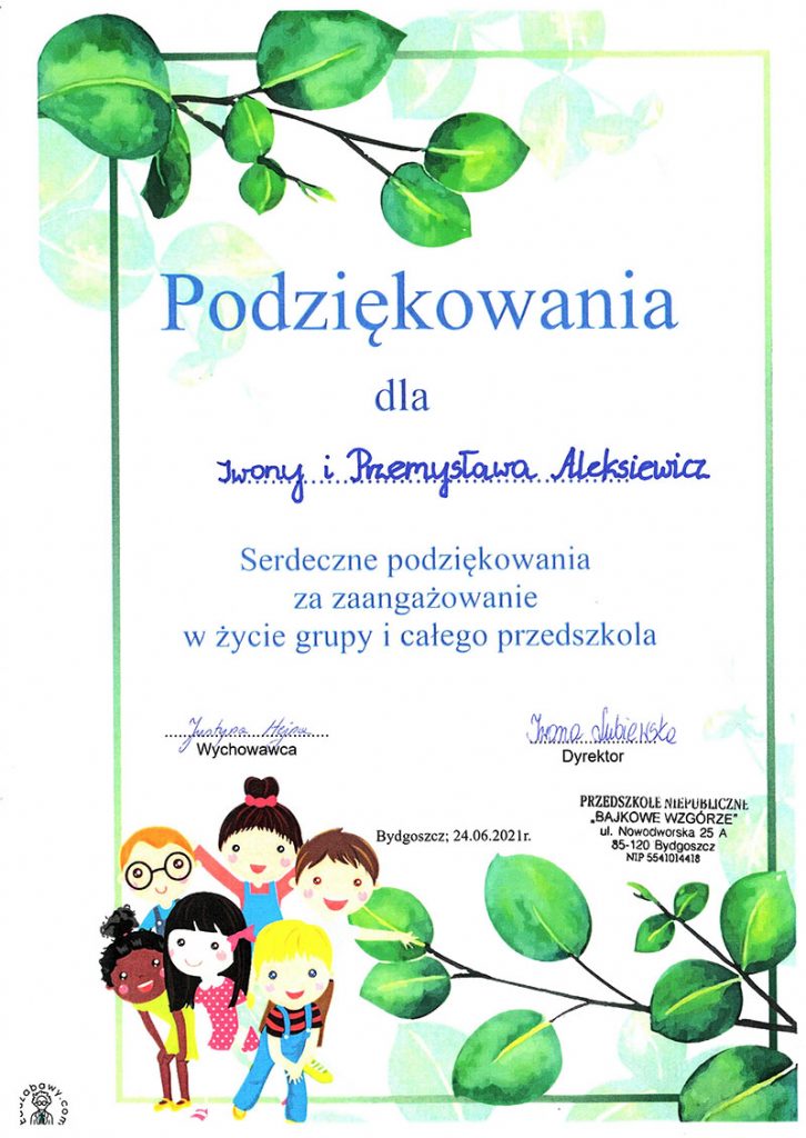 Paniom nauczycielkom z grupy, terapeutom oraz tym wszystkim Paniom które pracowały ze mną. Dziękuję za trud, serce i zaangażowanie. Wspaniałe jest to, że  w każdym z nas, w każdym dziecku Panie widzą  wyjątkową osobę, odkrywają talenty i pomagają je rozwinąć.  Dziękuję za przekazaną mądrość, wielkie serce i zrozumienie!